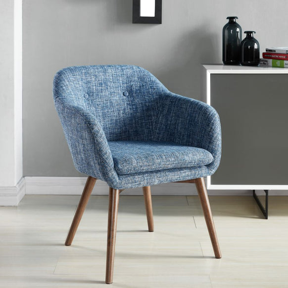 Le dossier incliné et la silhouette organique sans couture de cette chaise reflètent les percées audacieuses du design du milieu du XXe siècle, tandis que le capitonnage rappelle le luxe classique d'une époque antérieure. Recouvert d'un bleu-gris subtil et multi-tons, c'est un ajout accrocheur et confortable à votre salon, bureau ou chambre à coucher.