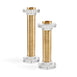 - Fabriqué en acier inoxydable doré sur une base cylindrique et rehaussé de détails en acrylique avec 2 hauteurs complémentaires, parfait pour styliser votre esthétique de design moderne.