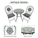 - Ensemble de mosaïque 3 pièces : cet élégant ensemble de meubles de patio 3 pièces comprend deux chaises pliantes en fer avec des détails en carrelage et une seule table ronde en fer avec des carreaux de céramique englobant tout le plateau de la table et formant un beau design. Présente un motif de carreaux d'inspiration espagnole dans des couleurs vives pour le plaisir de tous.