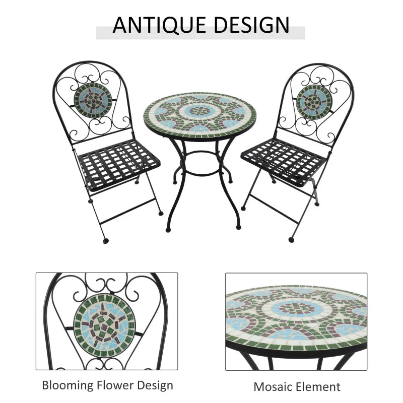 Ensemble bistro de patio 3 pièces avec motif mosaïque, ensemble de meubles de salle à manger d'extérieur pour 2 avec chaises pliantes, vert