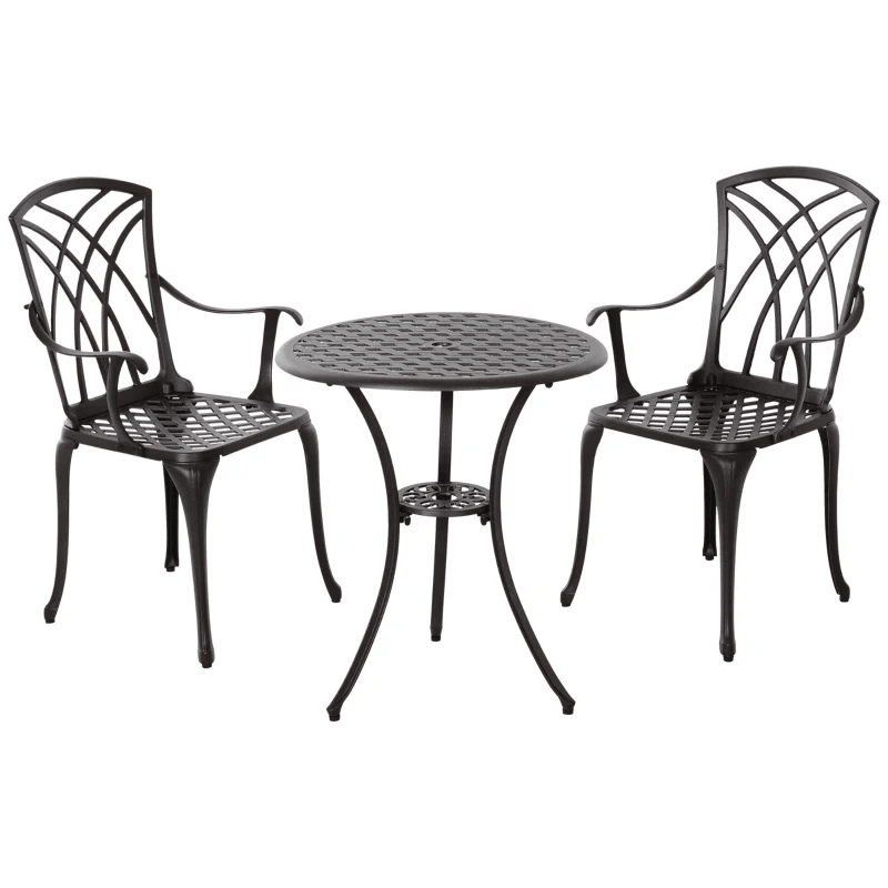 - Cadre en aluminium moulé : fabriqué avec des matériaux robustes et résistants à la rouille. L'ensemble de meubles de patio 3 pièces est fiable pour une utilisation en extérieur toute l'année. Les dossiers des chaises de balcon sont moulés dans un design découpé attrayant.