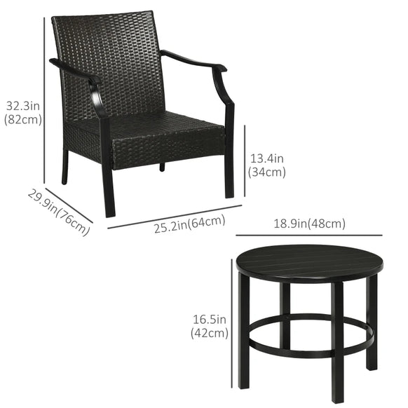 - Ensemble de bistrot 3 pièces : Ce mobilier de patio en rotin PE est composé de 2 fauteuils et d'une table basse créant un endroit merveilleux pour le confort et le divertissement, parfaitement ajouté à tout décor extérieur, comme les terrasses, les jardins ou les bords de piscine.