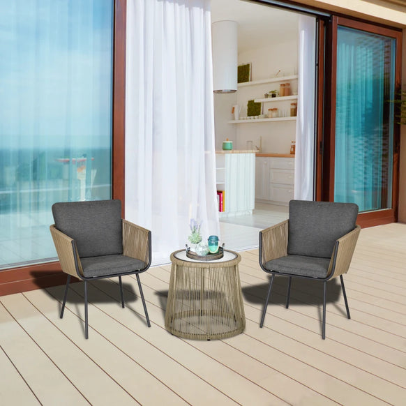 - Ensemble de bistrot de patio en trois pièces : cet ensemble de chaises de patio en osier comprend deux chaises en osier et une table basse avec plateau en verre trempé. Idéal pour faire une pause seul ou pour retrouver des amis au soleil