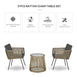 Ensemble de bistro de patio extérieur 3 pièces, meubles en rotin en osier 2 chaises 1 table basse avec pieds en métal pour jardin, cour, terrasse, gris