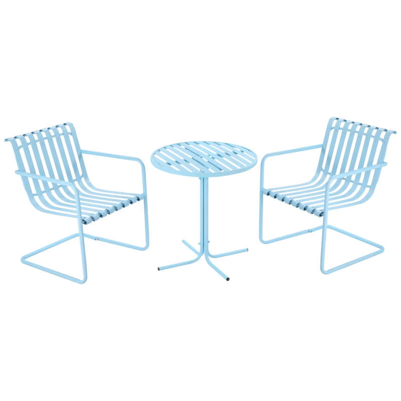 Ensemble de bistro de terrasse 3 pièces, ensemble de table basse de jardin avec cadre en métal avec 2 chaises et table ronde pour cour extérieure, porche, balcon au bord de la piscine, bleu ciel