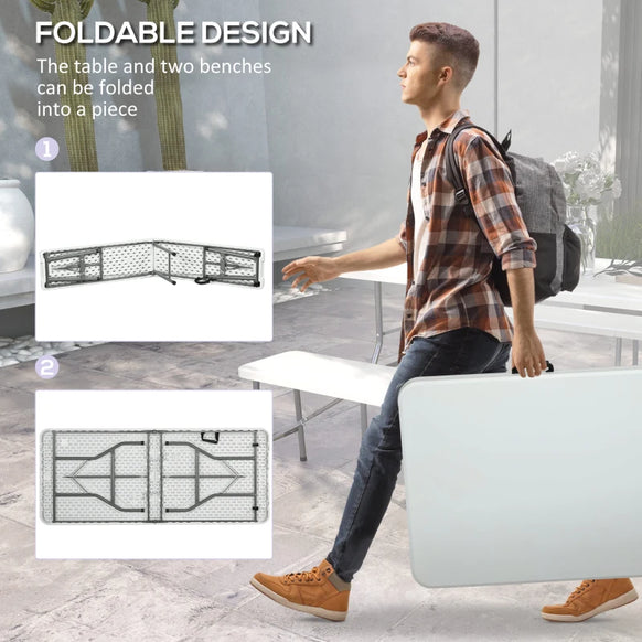 - Table et chaises pliables : la table de pique-nique pliante n'est pas seulement prête à être utilisée en extérieur ; ils sont également portables et faciles à transporter. Pliez les pieds de l'ensemble pour l'installer, le ranger, le déplacer ou le ranger rapidement. Servez un dîner, des boissons ou jouez à un jeu de société avec des amis.