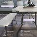 - Construction solide : notre table de pique-nique pliable fabriquée avec une structure en métal avec finition thermolaquée et du PEHD recyclé sur le dessus. Le PEHD est un matériau sélectionné pour ne pas se briser, se fissurer, s'écailler ou se peler. Environ 30 000 cruches à lait par heure sont recyclées en bois d'œuvre HDPE résistant aux intempéries.