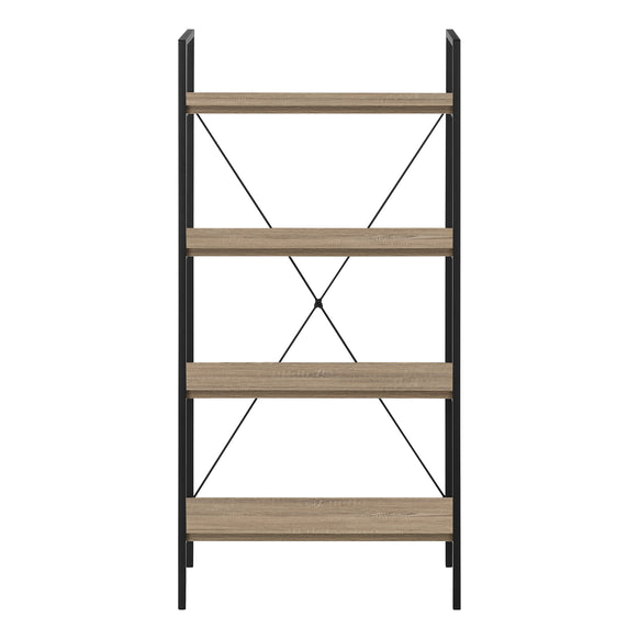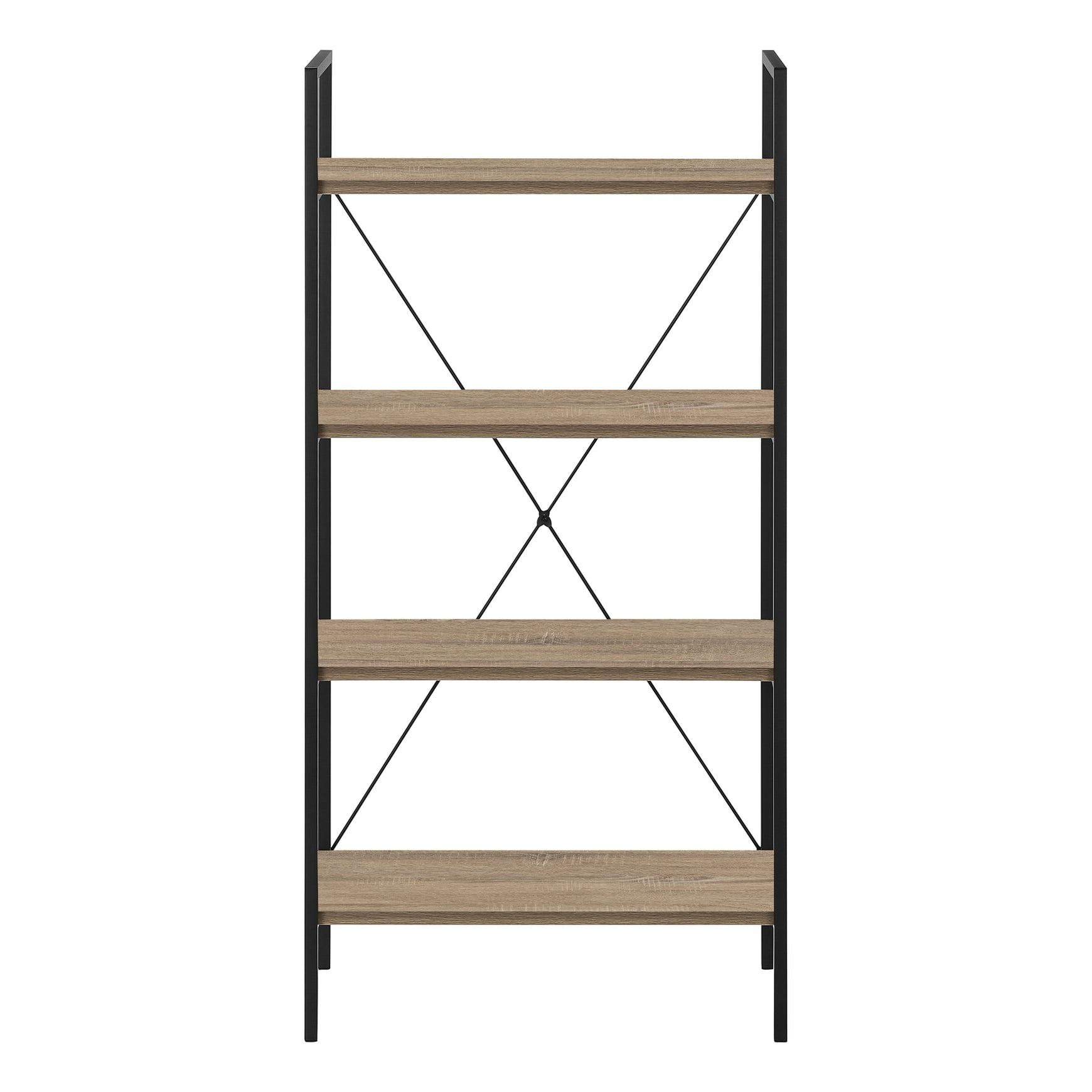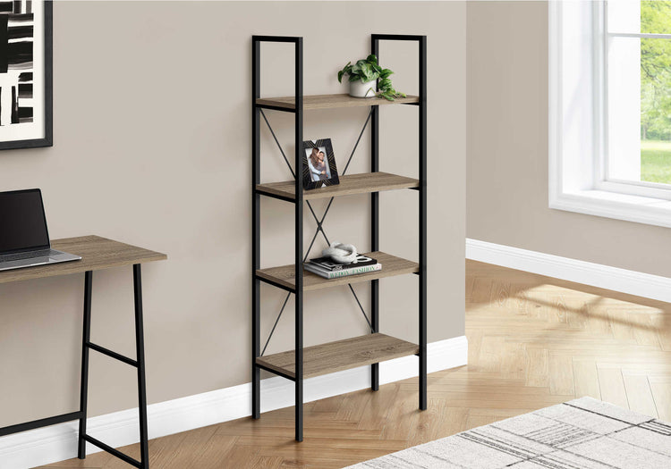 - Cette bibliothèque, au fini stratifié d'apparence bois taupe foncé, présente une conception peu encombrante et 4 étagères pour une polyvalence maximale.