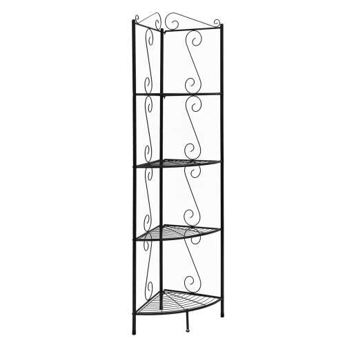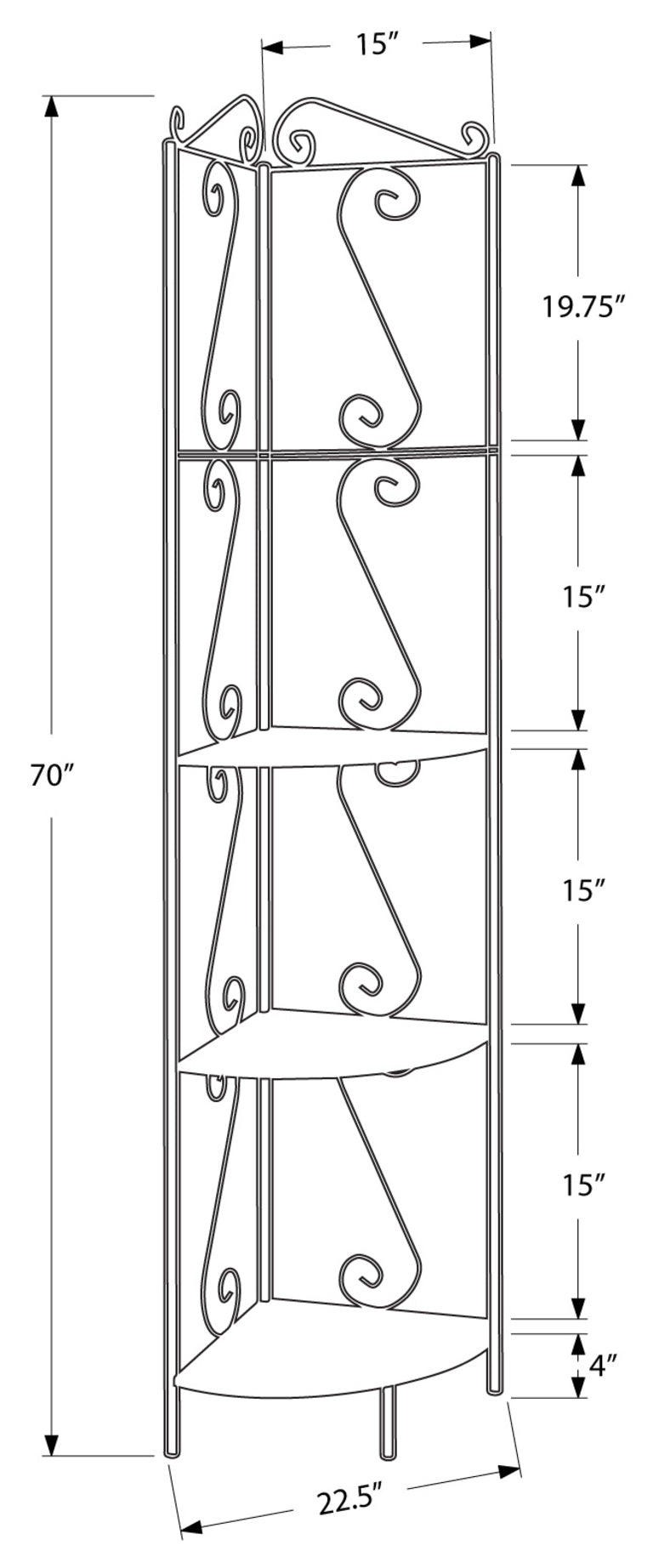 Pour s'adapter à vos exigences d'espace et de style, cette bibliothèque d'angle à quatre étagères peut être placée dans n'importe quelle pièce qui a besoin de rangement supplémentaire ou d'articles d'affichage et elle fera une déclaration. La bibliothèque etagere présente un élégant motif de volutes traditionnel dans une finition en métal cuivré. C'est la pièce d'accent parfaite pour les livres, les bougies, les cadres photo et autres objets de décoration d'appoint. Idéal pour les espaces restreints, cet appareil est votre solution d'organisation dans les petites maisons, les appartements et les condos où l'espace est limité.