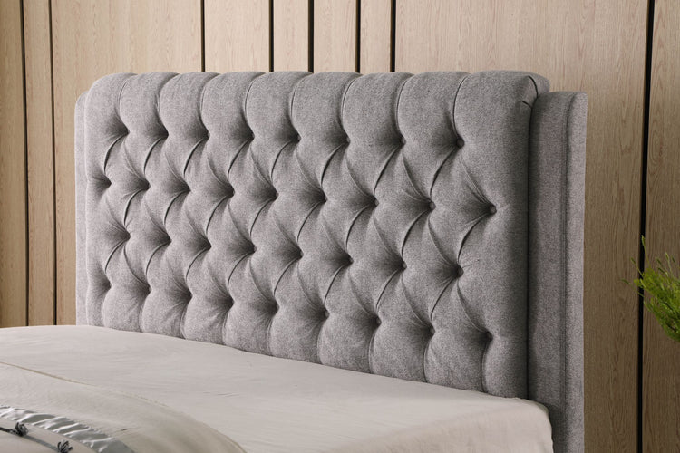 Élégant et sophistiqué, ce superbe lit ajoute une touche de glamour à n'importe quel espace de vie. Recouvert d'un revêtement en tissu de polyester moelleux, les accents capitonnés sur la tête de lit renforcent l'esthétique contemporaine de votre chambre à coucher. Les pieds évasés en bois massif supportent un système de lattes en bois courbé complet, permettant une répartition uniforme du poids de votre matelas, vous permettant également de dire enfin au revoir à ce vieux sommier tapissier. Deux tiroirs de rangement offrent amplement d'espace pour garder tous vos essentiels de sommeil et de tous les jours bien organisés et facilement à portée de main.