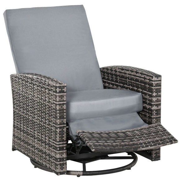 Canapé inclinable en rotin avec pivot à 360°, chaise longue d'extérieur en osier avec repose-pieds et coussin doux pour terrasse, jardin, arrière-cour, gris