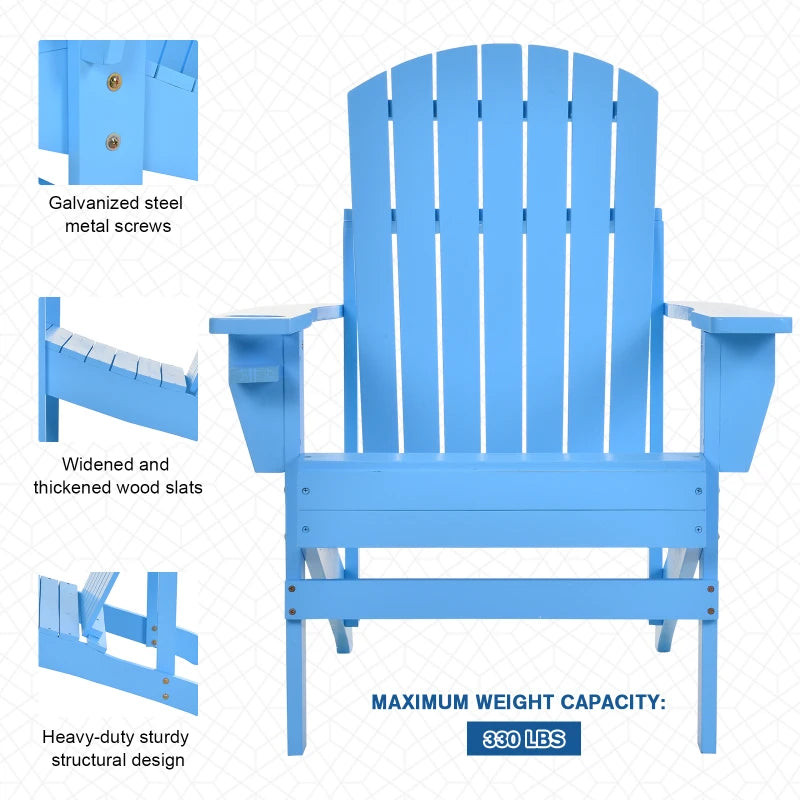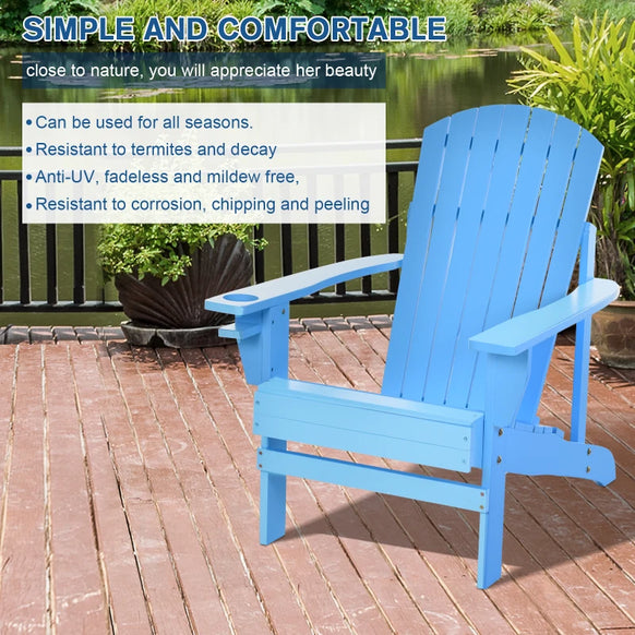 Chaise Adirondack classique, chaises Muskoka, chaise longue de jardin avec porte-gobelet pour Patio, intérieur, cour, bleu