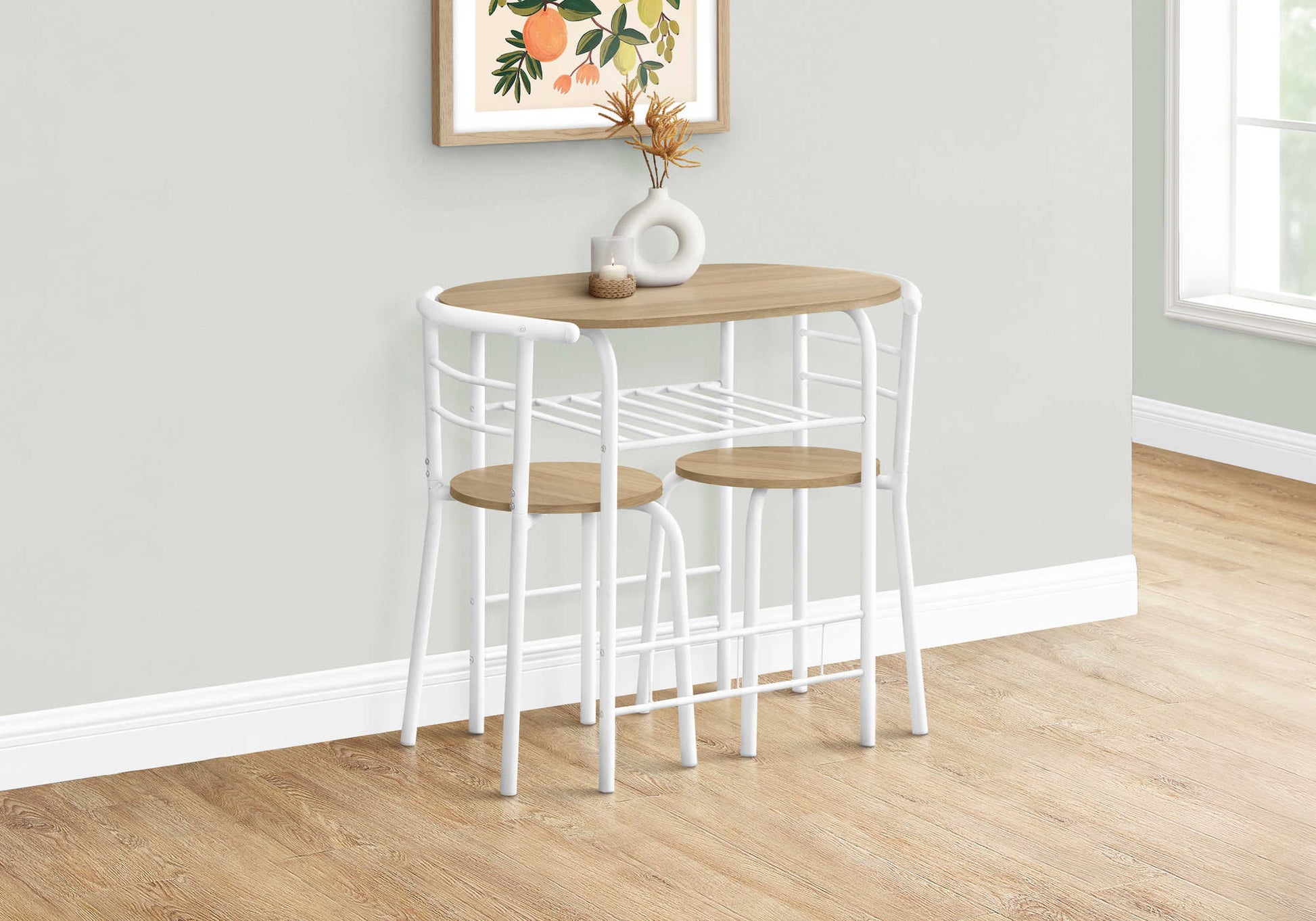 ENSEMBLE A DÎNER - ENSEMBLE 3PCS / DESSUS NATUREL / METAL BLANC ( Meuble Mtl )