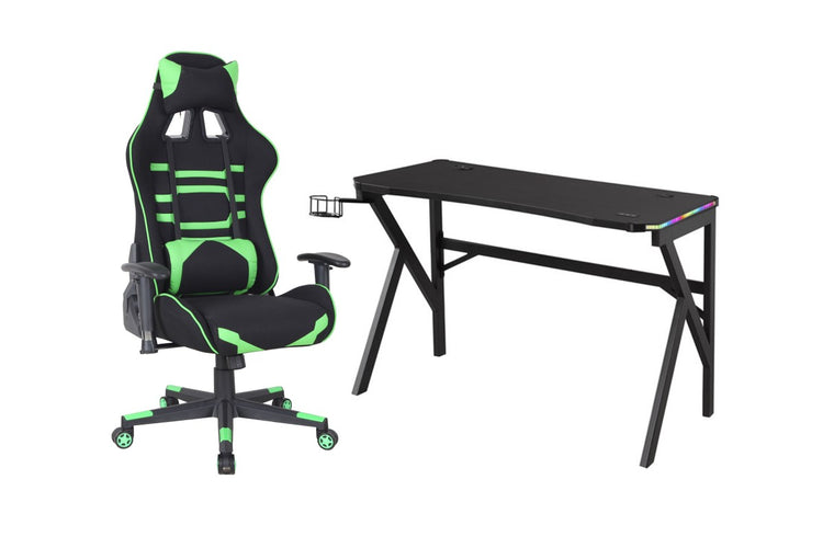Créez un environnement de jeu moderne dans votre espace de vie avec l'ensemble bureau et chaise de jeu Eclipse ! La table dispose d'un éclairage LED à plusieurs niveaux avec des commandes tactiles pour permettre une expérience de jeu optimale, tandis que le casque et les porte-gobelets intégrés gardent vos essentiels de jeu facilement à portée de main pour ces longs marathons de jeu en ligne. Les stations de charge sans fil et USB intégrées vous permettent de rester connecté à tout moment. Le cadre contemporain est doté d'un tube en fer enduit de poudre pour une utilisation durable, tandis que le dessus inspiré de la fibre de carbone ajoute une touche sophistiquée au design professionnel. La chaise offre le summum du confort de jeu offrant un mécanisme d'inclinaison pratique, une fonction d'inclinaison à 180 degrés et un levage hydraulique facile, cette chaise à dossier haut complète n'importe quel espace avec son design épuré et contemporain. Il est équipé de cinq roulettes doubles pour que vous puissiez le faire rouler facilement dans la pièce. Le complément parfait pour tout joueur passionné, cet ensemble bureau et chaise multifonctionnel impressionnera à coup sûr.