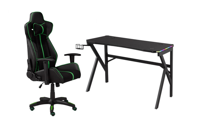 ENSEMBLE BUREAU ET CHAISE GAMING, VERT/NOIR ( Meuble Mtl )