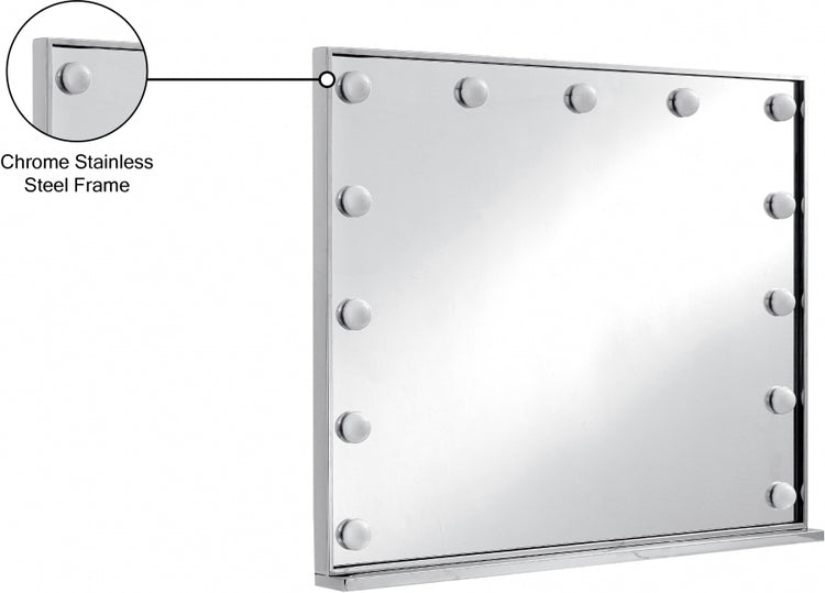 Sentez-vous comme une starlette en herbe lorsque vous vous préparez devant ce miroir hollywoodien. Ce joli miroir est doté d'un cadre en acier inoxydable chromé équipé de lumières qui encadrent son périmètre, ajoutant l'apparence et la sensation d'un dressing VIP à votre salle de bain. Les accents chromés sont glamour et chic, ajoutant au bel aspect du miroir. Accrochez-le au-dessus de votre coiffeuse ou de votre vanité, ou utilisez-le comme miroir de salle de bain.