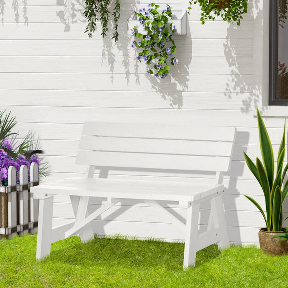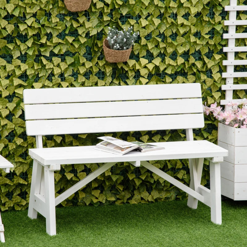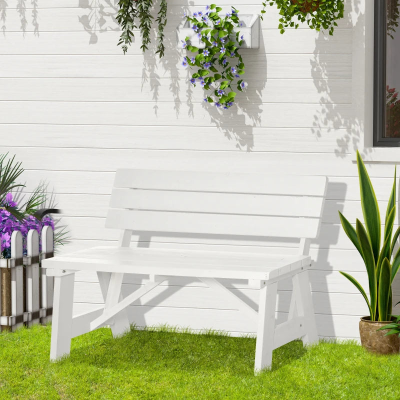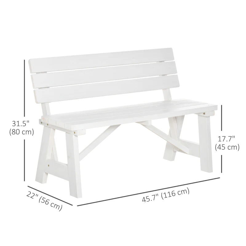 Banc de jardin en bois pour l'extérieur, banc de patio pour 2 personnes, causeuse pour pelouse, terrasse, cour, porche et entrée, blanc