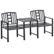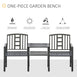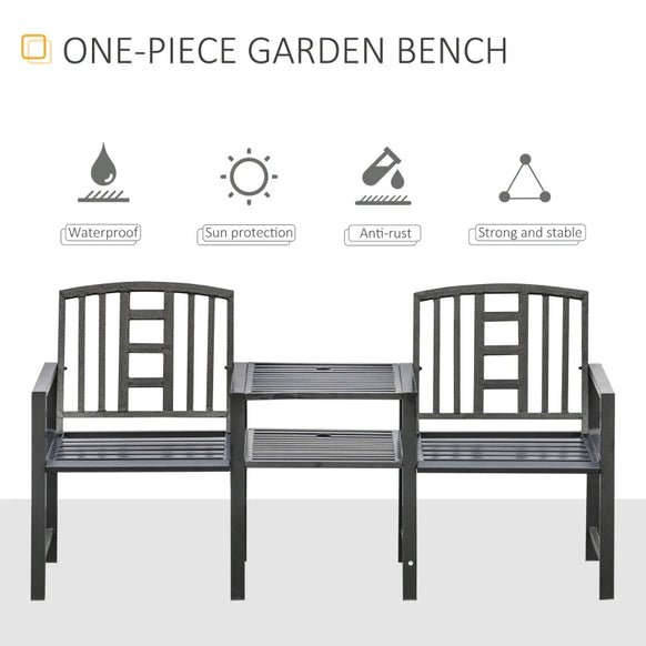 Banc de jardin en acier avec table centrale, trou pour parasol, siège double pour extérieur, patio, cadre résistant aux intempéries, noir