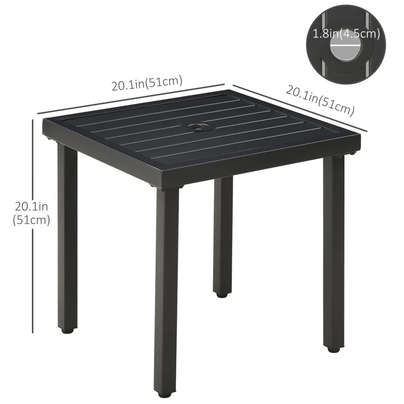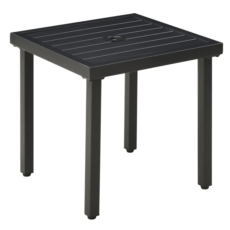 Table d'appoint d'extérieur, table d'appoint de patio avec trou pour parasol, petite table basse avec cadre en acier pour balcon, noire