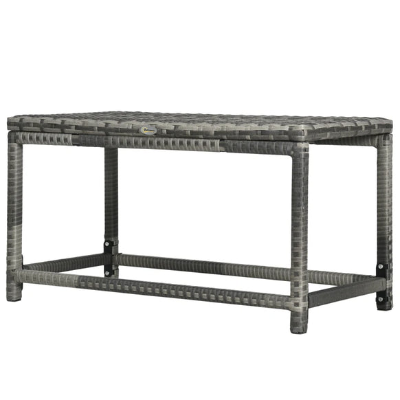 Table d'appoint en rotin pour terrasse, table d'appoint d'extérieur avec plateau entièrement tissé pour jardin, balcon, gris mélangé
