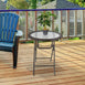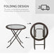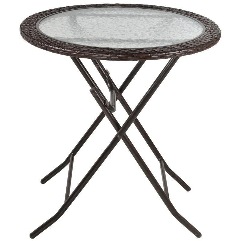 Table ronde pliante en métal et verre trempé, 26,8 po de diamètre (68 cm de diamètre), avec bordure en rotin marron, marron