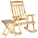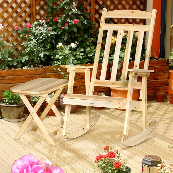Chaise à bascule en bois avec table, ensemble à bascule d'extérieur avec fauteuil à dossier haut et table d'appoint pliable pour cour, jardin, porche, naturel