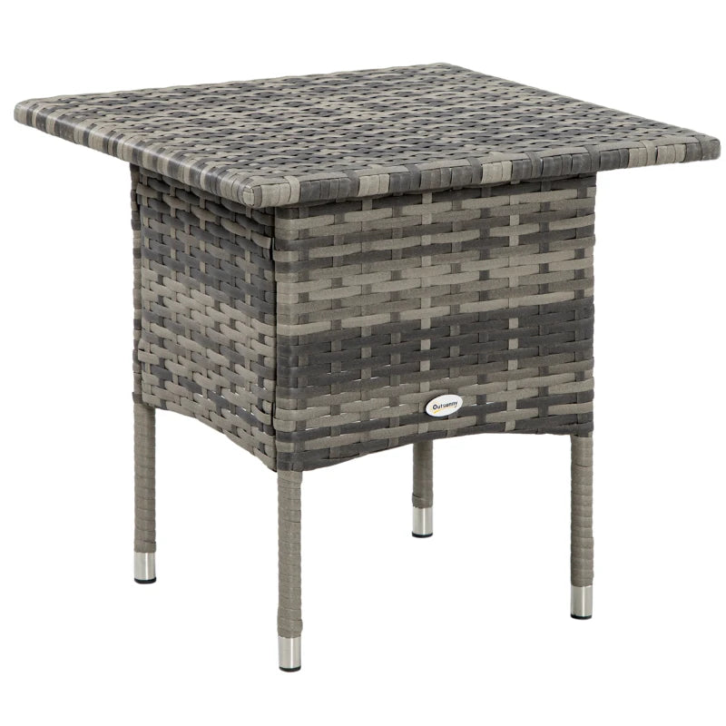 Table basse de patio en osier de 20 po, table basse d'extérieur avec planche en plastique sous le plateau tissé pour terrasse, jardin, balcon, gris mélangé