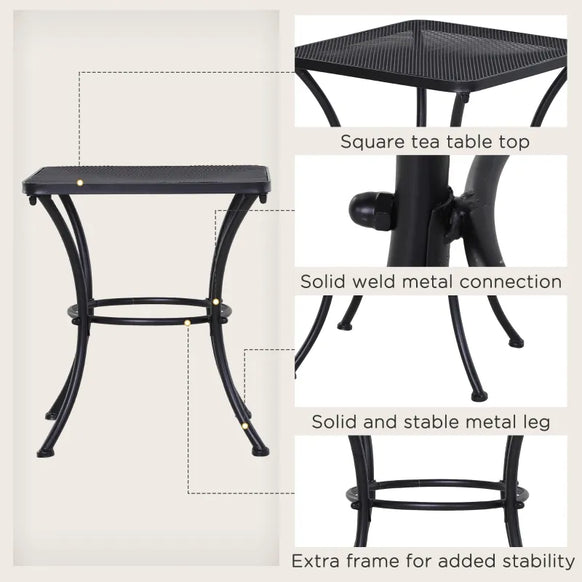 Table de bistro carrée en métal pour jardin, terrasse extérieure, bureau d'appoint, noir, 45,7 x 45,7 x 50,8 cm