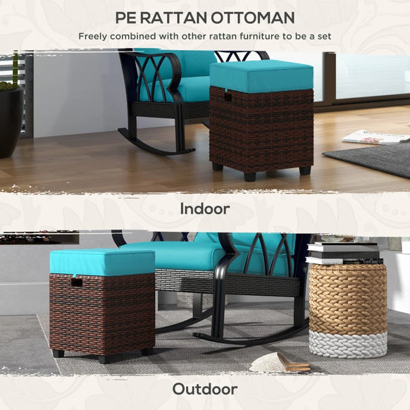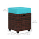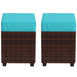 Ensemble de 2 poufs de Patio en osier, repose-pieds carré en rotin PE avec coussin amovible pour jardin, bleu ciel
