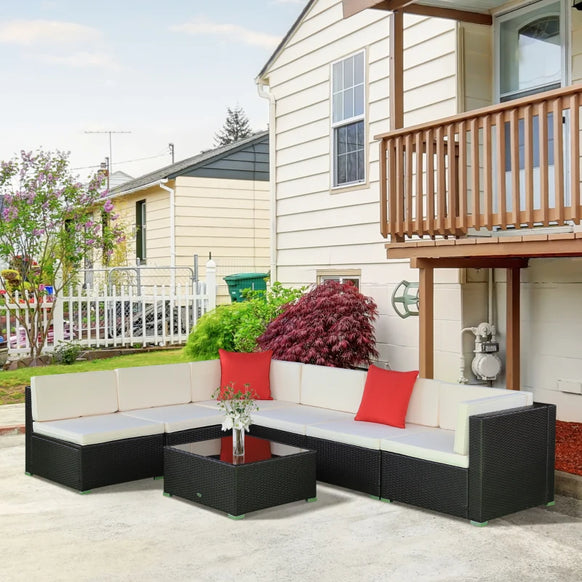 - Ensemble de canapés en rotin 7 pièces : Améliorez votre espace extérieur avec cet ensemble de meubles de patio en rotin chic et moderne. Il comprend quatre chaises du milieu, deux chaises d'angle et une table centrale qui peuvent être disposées d'innombrables façons pour s'adapter parfaitement à votre espace extérieur.