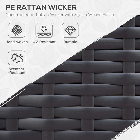 - Informations sur les meubles de patio en osier : Taille du canapé d'angle : 29,5" L x 29,5" L x 24,6" H (75 x 75 x 62,5 cm). Taille du canapé du milieu : 29,5" L x 25,6" L x 24,6" H (75 x 65 x 62,5). cm). Taille de la table : 28,7" L x 25,6" L x 12,6" H (73 x 65 x 32 cm). Capacité de poids : 352 lb (160 kg) (canapé), 154 lb (70 kg) (table). Assemblage requis.