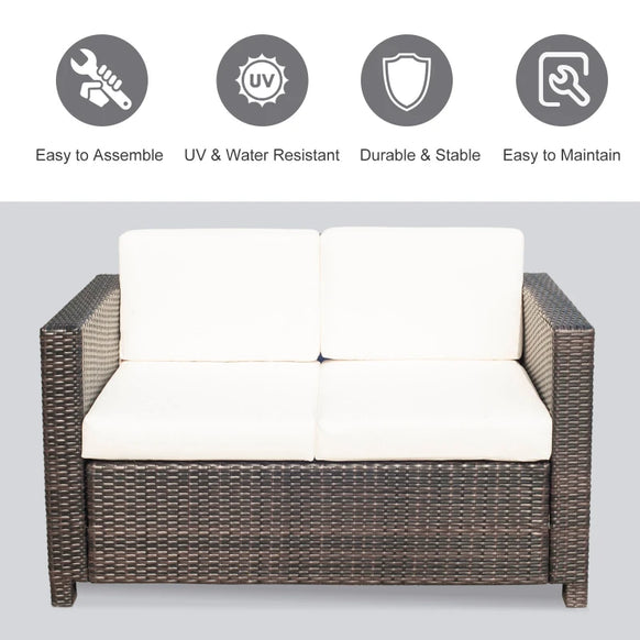 - Coussins résistants aux intempéries : cette causeuse de terrasse en rotin PE a une apparence élégante pour plus de confort et est idéale pour se détendre dans le jardin ou près de la piscine. Coussin de siège rembourré de 4" d'épaisseur et coussins de dossier doux avec fermetures à glissière pour un retrait et un lavage faciles.