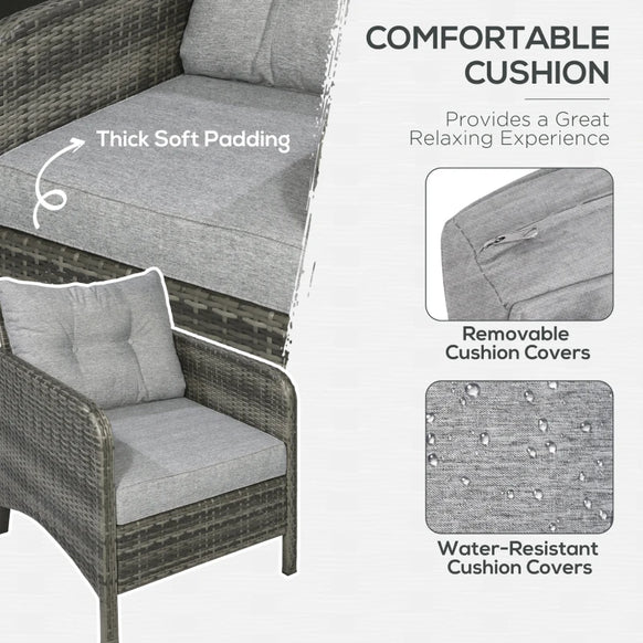 - Conçu pour l'extérieur : cet ensemble de meubles d'extérieur est composé d'un cadre en acier avec une finition thermolaquée, enveloppé de rotin PE entièrement tissé à la main, ce qui le rend robuste, facile à nettoyer et résistant aux UV et aux dégâts légers de l'eau.