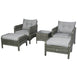 Ensemble de 5 meubles de patio en osier avec coussins rembourrés épais, ensemble de café de conversation en rotin PE avec fauteuils, repose-pieds et table en verre, gris clair