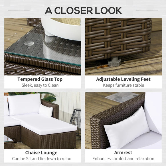 - Ensemble de patio 3 pièces : cet ensemble de meubles de patio d'extérieur polyvalent comprend 1 chaise d'angle, 1 canapé double et 1 table basse en verre trempé de 5 mm d'épaisseur. Il saura vous satisfaire que vous soyez assis ou allongé. Il est parfait pour la terrasse, le bord de la piscine, le jardin ou tout autre espace extérieur.