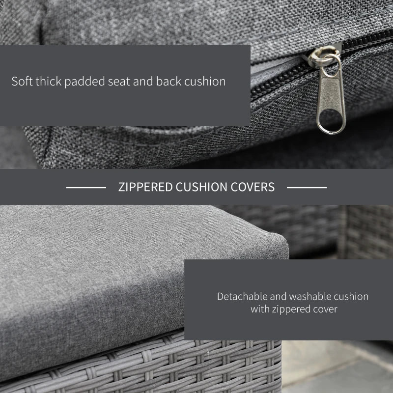 - Confort amélioré : les meubles sectionnels d'extérieur équipés de coussins de siège de 2,25" remplis de coton doux et de coussins de dossier de 2,25" pour plus de confort et de détente, les housses de coussin de siège et de dossier avec fermeture éclair peuvent être facilement retirées pour être lavées.