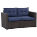 Ensemble de meubles de patio 2 pièces, causeuse d'extérieur, canapé d'angle en osier, combinaison libre de meubles en rotin PE, avec accoudoirs incurvés et coussin rembourré pour balcon, jardin, pelouse, bleu foncé