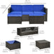 Ensemble de meubles de patio 3 pièces avec coussins, ensemble de canapé d'angle de conversation en osier et rotin PE avec table en verre et pied réglable pour jardin, pelouse, bleu