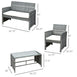 Ensemble de meubles de patio 4 pièces avec coussins, ensemble de canapé de conversation d'extérieur en rotin PE avec table basse et causeuse avec plateau en verre, pour jardin, balcon, blanc crème