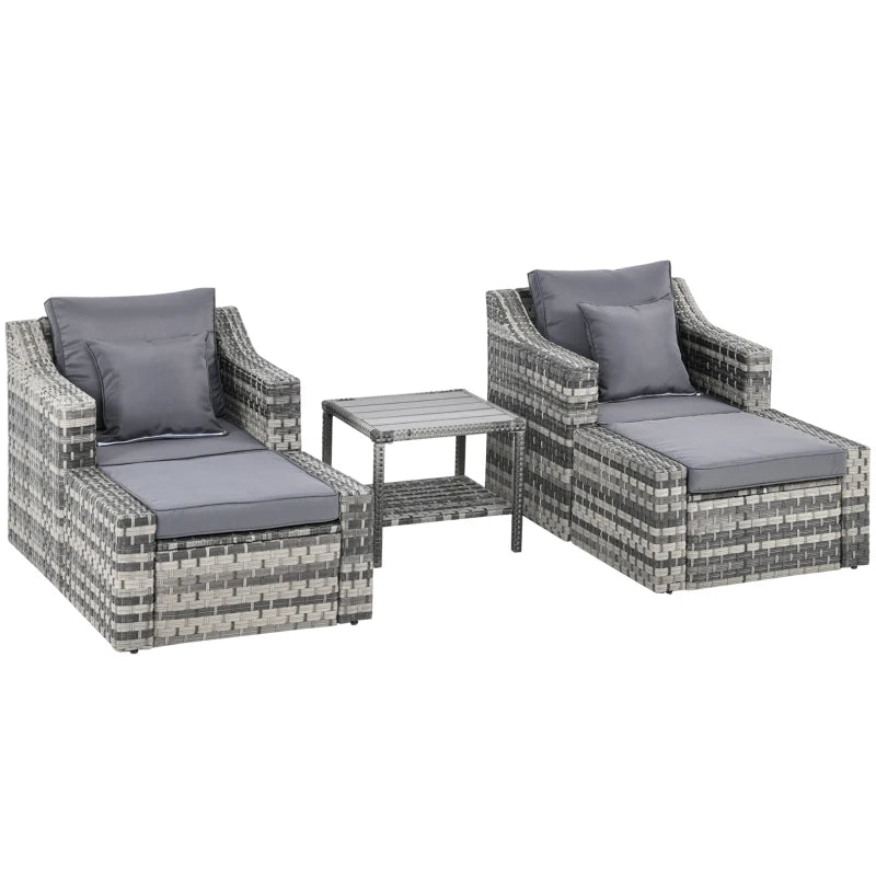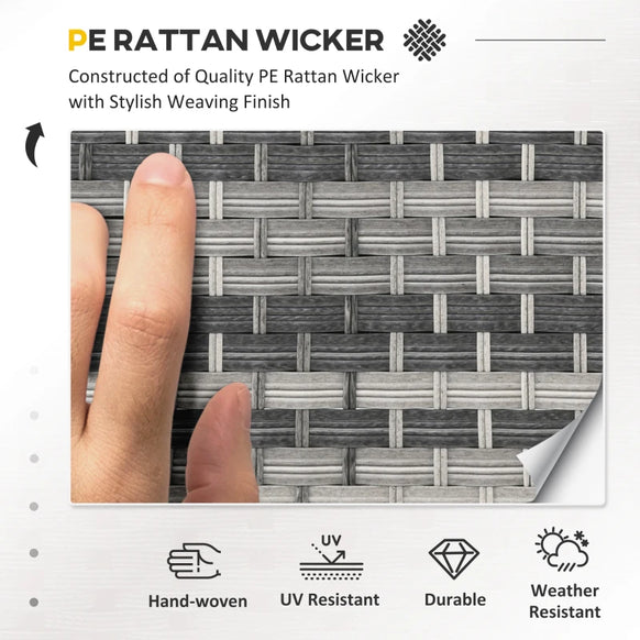 - Table basse : Ce meuble de patio Outsunny comprend une table basse pratique qui vous permet de garder tous vos essentiels d'extérieur à portée de main. Doté d'une étagère supérieure et inférieure à lattes, il offre suffisamment d'espace de rangement pour vos essentiels et une apparence élégante et polie tout en étant facile à nettoyer.