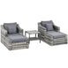 Ensemble de meubles de patio 5 pièces, ensemble de conversation d'extérieur en rotin et osier avec 2 chaises rembourrées, 2 poufs et table basse, gris