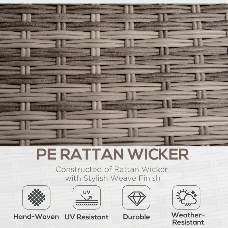 - Construction de qualité : l'ensemble de conversation fabriqué en beau rotin PE semi-circulaire double brin reproduit l'apparence et la sensation de l'osier traditionnel mais est plus résistant aux intempéries ; Cadre en acier galvanisé à revêtement en poudre résistant à la rouille pour une durabilité maximale.