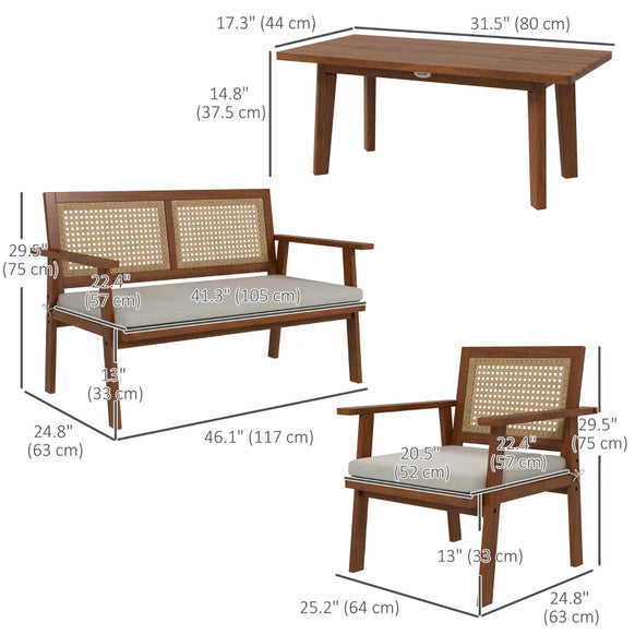 - Structure en bois d'acacia : La structure robuste de cet ensemble de patio est fabriquée en bois d'acacia, assurant la stabilité et ajoutant une touche de nature à votre décoration extérieure.