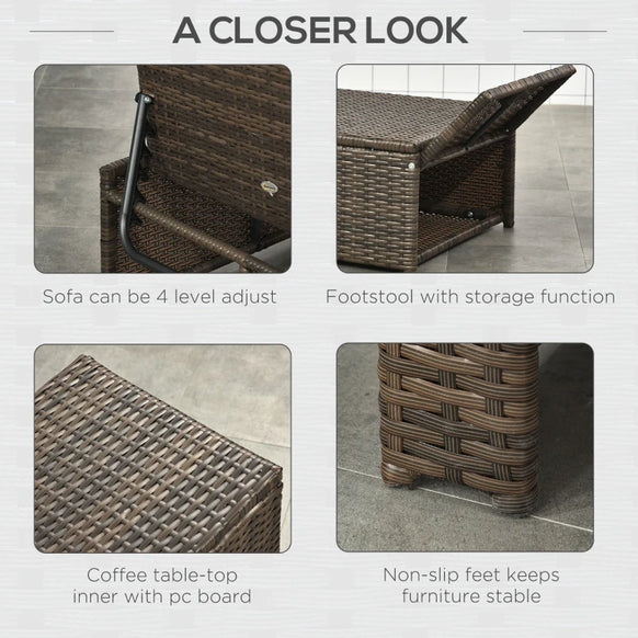 - Fonction et utilisation : l'ensemble de meubles de patio est livré avec un canapé d'angle avec accoudoirs avec dossier réglable à 4 niveaux comme chaise longue, le repose-pieds avec poignée et peut ranger des objets, la table basse avec panneau de circuit imprimé peut rendre les choses stables.