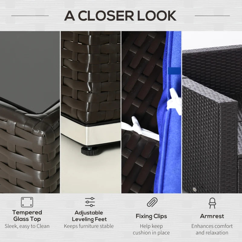 Ensemble de meubles d'extérieur en rotin 7 pièces, ensemble de canapé de conversation sectionnel en osier pour patio, bleu