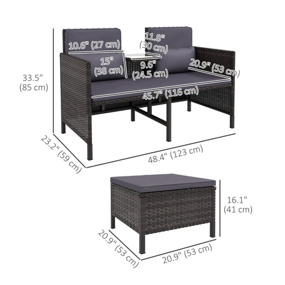 - Design élégant : doté d'une chaise double avec une table basse centrale, cet ensemble de patio 3 pièces est rehaussé d'un plateau en verre trempé, idéal pour prendre un verre sur votre terrasse ou dans votre jardin.