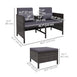- Informations sur l'ensemble de canapé en rotin : Dimension de la causeuse : 48,4"L x 23,2"P x 33,5"H (123L x 59P x 85H cm), Dimension de la chaise : 20,9"L x 20,9"P x 16,1"H (53L x 53P x 41H cm) , Capacité de poids : chaise : 352 lb (160 kg), table : 110 lb (50 kg). Assemblage requis.