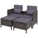 Meubles de rotin de patio, ensembles de canapés de conversation, meubles de balcon en osier en plein air avec table moyenne et coussin, gris