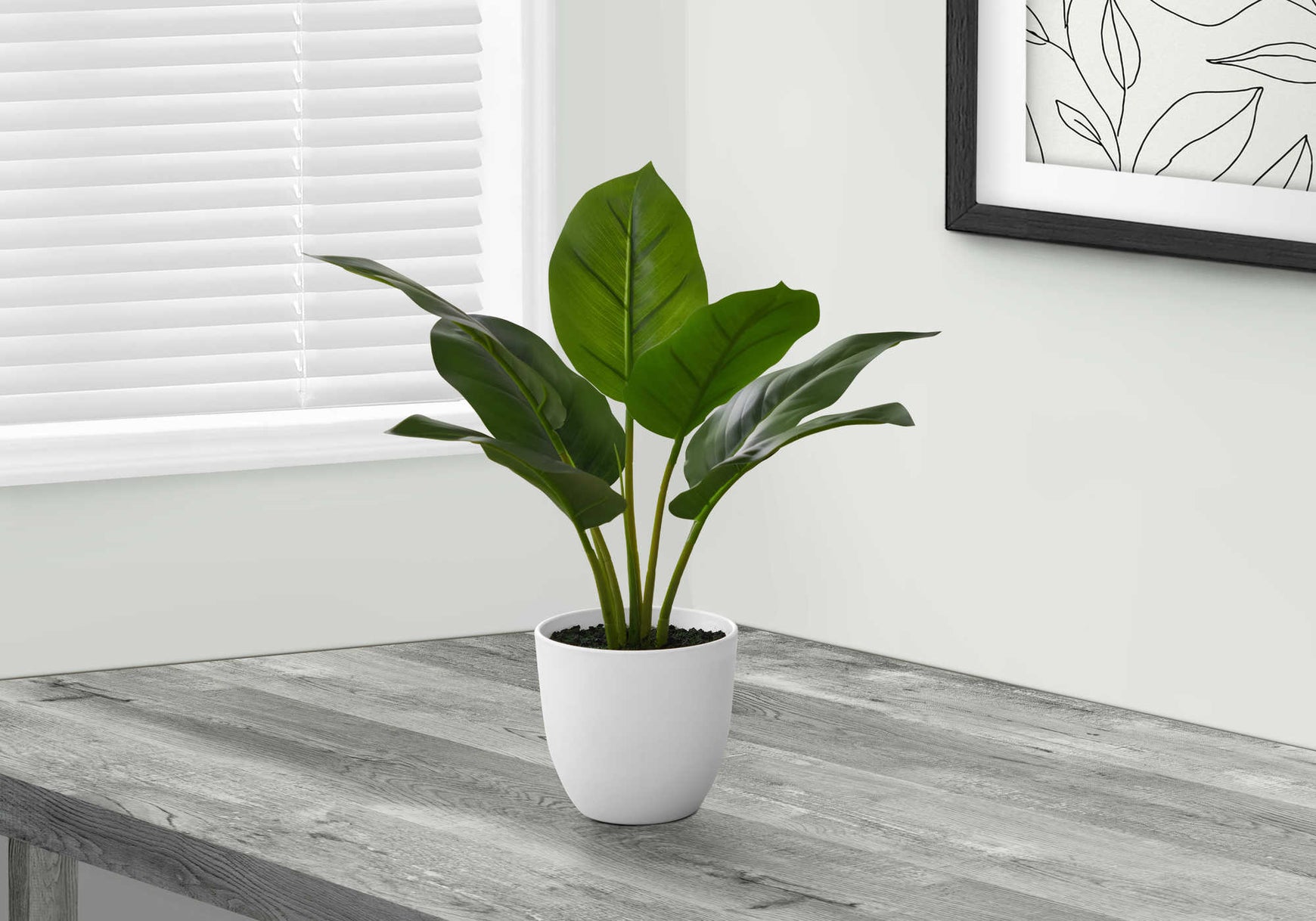 - Ajoutez une touche de verdure élégante à n'importe quel espace avec ce 17" ; grande plante artificielle d'aureum d'intérieur dans un pot blanc.