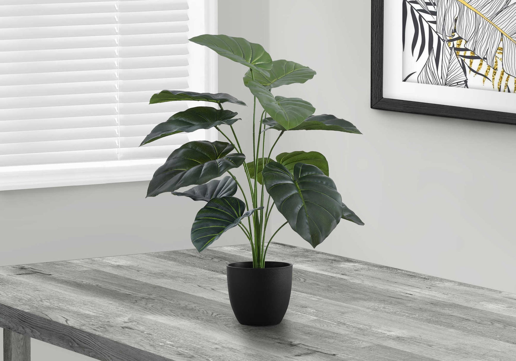 - Ajoutez un peu de verdure à votre espace avec cette d'Alocasia artificielle qui mesure 24 po, installée dans un pot noir de 5 po.